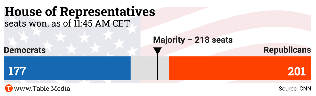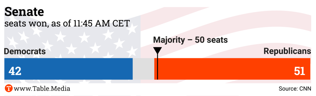 Link was noncommittal about whether the election result might influence the FDP’s decision on staying in the coalition. “The election of Donald Trump clearly heightens the pressure to complete economic policy tasks.” CDU defense policy expert Roderich Kiesewetter called on the FDP to leave the coalition: “If the FDP doesn’t have the courage to exit, we’re facing a deadlock. And that’s something we simply can’t afford.”