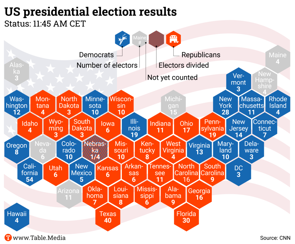 It happened faster than expected, and the result is more decisive than anticipated: Donald Trump will be US President once again. For the US election, we are sending you a special report – including coverage from Washington, initial reactions and key results in graphics.