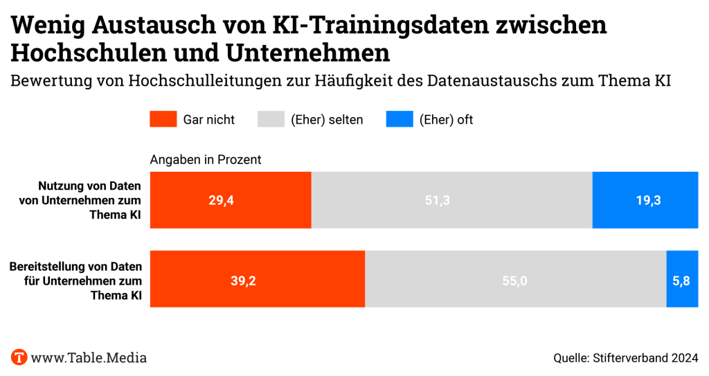 Gefragt, ob es eine stärkere Förderung von Forschung und Transfer im KI-Bereich brauche, betont der Generalsekretär des Stifterverbandes, dass es eher um systemische und strukturelle Änderungen gehe. “Die bahnbrechenden Entwicklungen im Bereich der KI sind ja in den letzten Jahren stark aus den großen Tech-Unternehmen gekommen. Dies basiert – vor allem in den USA – auf einem eng verzahnten Ökosystem von der Grundlagenforschung bis zur Anwendung.”