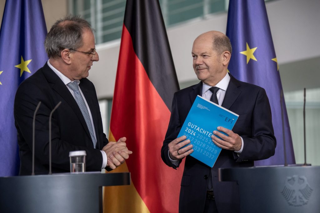 Uwe Cantner übergibt das aktuelle Jahresgutachten der EFI an Bundeskanzler Olaf Scholz.