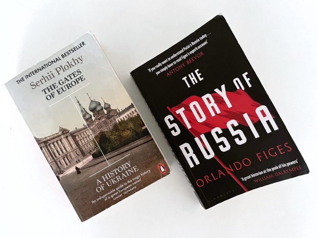 Zwei Geschichten einer Region, zwei Bücher über die Entwicklung zweier Staaten: “The Gates of Europe. A History of Ukraine” (Serhii Plokhy) und “The Story of Russia” (Orlando Figes): Während Plokhy die Geschichte der Ukraine als einen Emanzipationskampf erzählt, als ein Ringen zwischen den geografischen und politischen Kulturlandschaften Westeuropas und Russlands/Asiens, beschreibt Figes Russlands Weg als einen Abwehrkampf gegen äußere Bedrohungen. Plokhy ist ein in der Sowjetunion, auf dem Territorium des heutigen Russland, geborener Sohn ukrainischer Eltern. Die erste Ausgabe seines Buches erschien 2016, nachdem Russland 2014 den Krieg gegen die Ukraine begonnen hatte. Der Emanzipationskampf der Ukraine steht wohl nicht zufällig im Zentrum des Buches. Plokhy geht auch auf die Situation verschiedener Minderheiten ein – Juden, Polen, Tataren, Kosaken – und verdeutlicht damit, wie vielfältig und regional sehr unterschiedlich die Entwicklungen in der Ukraine verliefen.